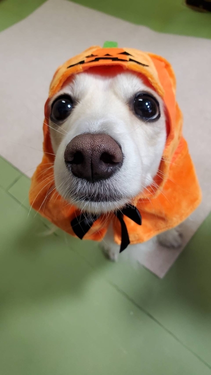 かほちゃんとダイちゃんにカボチャ🎃の被り物してもらいました